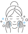 顔・手を湿らせた後、手のひらに適量(1cm程度)を取り、少量の水またはぬるま湯でよく泡立てます。指と肌の間に泡のクッションを感じながらやさしく洗い、その後、水またはぬるま湯で十分にすすいでください。